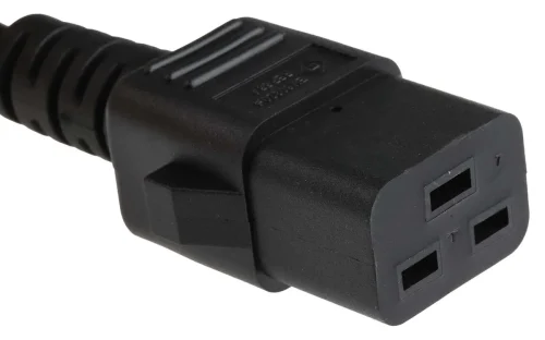High-quality power cord with a UK 3-pin plug on one end and a C19 connector on the other.